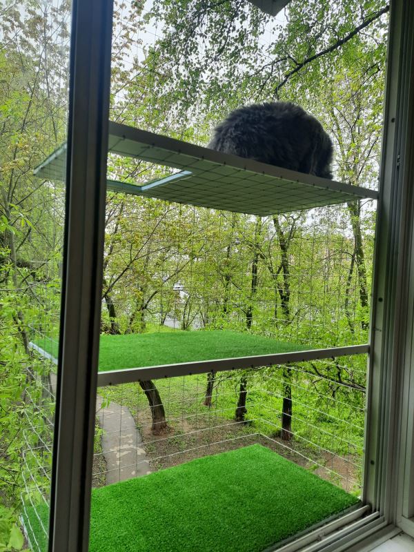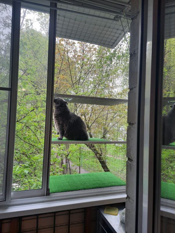 - Не приходится волноваться за жизнь и здоровье животного. Поместив питомца на кошачий балкон, можно спокойно заниматься личными делами, зная, что пушистый друг находится в безопасности.